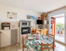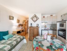 Studio 28 m2, au rez-de-chaussée. Aménagement simple et confortable: séjour/salle à manger avec 1 lit gigogne (2 pers. 2 x 90 cm, longueur 190 cm), TV (écran plat). Sortie sur la terrasse. Cabine avec 1 grand-lit (140 cm, longueur 190 cm). Coin cuisine (2 plaques vitrocéramiques, grille-pain, bouilloire électrique, four micro-ondes, cafetière électrique). Salle de bains, WC séparé. Chauffage électrique. Petit jardin 17 m2. Meubles de terrasse. A disposition: fer à repasser, sèche-cheveux. Internet (Connexion WIFI, gratuit). Place de parking No 26. Veuillez noter: maximum 1 animal/ chien autorisé. Détecteur de fumée. 641250011111D- Caractéristiques de l'hébergement