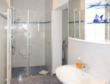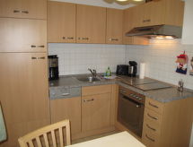 Apt 2 pièces 55 m2 au 1er étage. Clair, aménagement plaisant: séjour avec TV (satellite) et radio. Sortie sur le balcon. 1 chambre avec 1 lit double. Cuisine (four, lave-vaisselle, 4 plaques vitrocéramiques, grille-pain, bouilloire électrique, cafetière électrique) avec table pour les repas. Douche/WC. Chauffage au gaz. Balcon. Mobilier de balcon. A disposition: lave-linge. Place de parking (1 Voiture). Veuillez noter: logement non-fumeur. Maximum 1 animal/ chien autorisé. Détecteur de fumée.- Installations