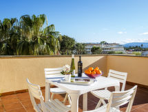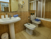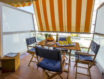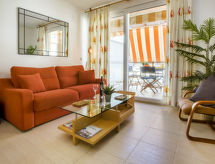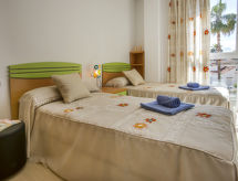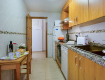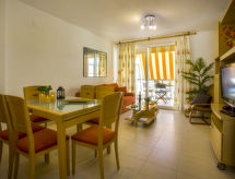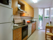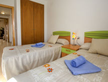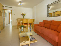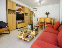 "Zurich", apt 3 pièces 77 m2 au 2ème étage. Spacieux et clair, aménagement très confortable et plaisant: séjour/salle à manger avec Télévision numérique, air-conditionné et chauffage à air chaud. Sortie sur la terrasse. 1 chambre avec 1 grand-lit (150 cm, longueur 190 cm), bain/bidet/WC, air-conditionné et chauffage à air chaud. 1 chambre avec 2 lits (90 cm, longueur 190 cm), air-conditionné, ventilateur et chauffage à air chaud. Cuisine (four, lave-vaisselle, 4 plaques vitrocéramiques, grille-pain, four micro-ondes, congélateur, cafetière électrique). Douche/WC. Grande terrasse 60 m2, terrasse 8 m2. Meubles de terrasse. A disposition: lave-linge, fer à repasser, chaise haute pour enfant, lit bébé, sèche-cheveux. Internet (Connexion WIFI, gratuit). Place de parking. Veuillez noter: TV seulement ES. VT-489842-A- Activités à proximité