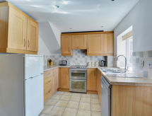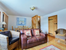 4 -sobna kuća u nizu na 2 etaže. Svrsishodno i komforno uređena: dnevni boravak/blagovaona s otvorenim kaminom, TV-om, muzičkom linijom, DVD-om i peći na drva. Kuhinja (4 ploče za kuhanje, pećnica, perilica za suđe, X, mikrovalna pećnica, zamrzivač). Odv. WC. Gornji kat: 2 sobe, svaka soba s 1 franc. krevetom. 1 mala soba s 1 franc. krevetom. Kada/tuš/WC. Grijanje na drva. Vrt, travnjak. Garnitura za sjedenje, vrtni roštilj. Na raspolaganju: perilica za rublje, sušilica, visoka dječja stolica, dječji krevetić. Parking uz kuću. Najviše 2 kućna ljubimca / psa dozvoljena.- Značajke smještaja