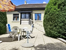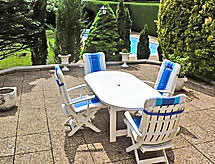 3 -sobna kuća 81 m2. Objekt pogodan za 2 odraslih. Komforno i ukusno uređena: blagovaona s stolom za blagovanje. Dnevni boravak s kabelskom TV. 1 soba s 2 kreveta (90 cm, dužina 200 cm). Kuhinja (pećnica, perilica za suđe, 4 staklokeramičke ploče za kuhanje, mikrovalna pećnica). Tuš/WC. Grijanje na plin. Velika vrtna terasa. Garnitura za sjedenje, ležaljke (2). Na raspolaganju: Internet (DSL/LAN, besplatan). Dodatna informacija: nije prikladno za djecu mlađu od 17 godina. Apartman za nepušače.- postrojenja