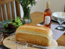 4 -sobna kuća na 2 etaže. Prostrano i svijetlo, komforno i ukusno uređena: otvoreni dnevni boravak s TV-om, plosnatim TV ekranom i DVD-om. Otvorena kuhinja (4 ploče za kuhanje, pećnica, perilica za suđe, mikrovalna pećnica, zamrzivač) s stolom za blagovanje. Kada. Grijanje. Gornji kat: 1 bračna soba s 1 bračnim krevetom i TV-om (plosnatim TV ekranom). 1 soba s 2 kreveta. 1 soba s 1 krevetom. Kada/tuš/WC. Grijanje. Garnitura za sjedenje, vrtni roštilj. Lijep pogled na planine. Na raspolaganju: perilica za rublje, sušilica. Internet (wireless LAN [WLAN], besplatan). Dodatna informacija: kuća za nepušače. 3 kućna ljubimca / psa dozvoljena.- postrojenja
