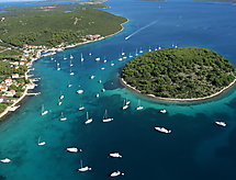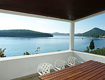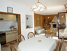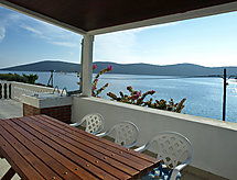 4 -sobni apartman 100 m2 na 1. katu. Veliki dnevni boravak/blagovaona 50 m2 s TV-om sa sat. prijemnikom i klima uređajem. Izlaz na terasu. 2 sobe, svaka soba s 1 franc. krevetom (180 cm, dužina 200 cm). 1 soba s 1 krevetom (90 cm, dužina 200 cm), 1 franc. krevetom (180 cm, dužina 200 cm). Otvorena kuhinja (4 ploče za kuhanje, pećnica, zamrzivač). Odv. WC, kada/tuš/WC. Terasa 50 m2. Garnitura za sjedenje. Vrlo lijep pogled na more. Na raspolaganju: Internet (wireless LAN [WLAN], besplatan).- Mjesto