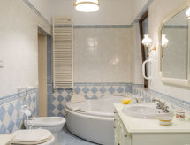6 -sobna vila 280 m2. Prostrano, komforno i stilski uređena: veliki dnevni boravak s otvorenim kaminom (samo za dekoraciju), TV-om sa sat. prijemnikom (plosnatim TV ekranom). Izlaz u vrt. Blagovaona. 1 bračna soba s tušem/bidetom/WC-om. 1 bračna soba s tušem/bidetom/WC-om. 1 bračna soba s kada/tuš/bidet/WC i klima uređajem. Izlaz u vrt. 1 soba s 2 kreveta. Izlaz u vrt. Velika kuhinja (5 pećnica, perilica za suđe, toster, kuhalo za vodu, mikrovalna pećnica, zamrzivač, el. aparat za kavu) s stolom za blagovanje. Izlaz u vrt. Kada. Grijanje na plin. Vrlo lijep panoramski pogled na dolinu. Na raspolaganju: perilica za rublje, dječji krevetić. Internet (wireless LAN [WLAN], besplatan). 1 kućni ljubimac / pas dozvoljen.- Značajke smještaja