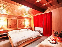 2 -sobni apartman 40 m2, u prizemlju. Objekt pogodan za 2 odraslih. Jednostavno i s puno drva uređen: dnevni boravak/blagovaona s kutom za blagovanje. 1 bračna soba. Otvorena kuhinja (4 ploče za kuhanje, pećnica). Tuš/WC. Lijep pogled na planine i krajolik. Dodatna informacija: apartman za nepušače. Protupožarni alarm.- postrojenja