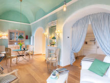 "Al Monastero", 1 -sobni apartman 70 m2, u prizemlju. Prostrano, vrlo lijepo i ukusno uređen: dnevni boravak/blagovaona s 1 krevetom (160 cm, dužina 200 cm), TV-om. Otvorena kuhinja (pećnica, 4 plamena za kuhanje, toster, kuhalo za vodu, el. aparat za kavu). Tuš/bidet/WC. El. grijanje, grijanje na plin, klima uređaj. Grijanje na raspolaganju samo od 01.11. do 30.04. Vrlo lijep panoramski pogled na more i mjesto. Na raspolaganju: perilica za rublje, sušilica. Internet (wireless LAN [WLAN], besplatan). Dodatna informacija: vlastiti ulaz. CITRA 008031-LT-1074- postrojenja