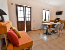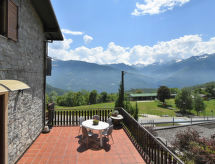 4 -sobni apartman 70 m2 na 2 etaže na 1. katu, prema jugu. Svijetlo, komforno i moderno uređen: dnevni boravak/blagovaona s otvorenim kaminom (samo za dekoraciju), stolom za blagovanje i TV-om (plosnatim TV ekranom). Izlaz na balkon, na terasu. Mala kuhinjska niša (pećnica, perilica za suđe, 4 plamena za kuhanje, toster, kuhalo za vodu, mikrovalna pećnica, zamrzivač). Gornji kat: 1 soba s 1 krevetom. Izlaz na balkon. 1 soba s 1 x 2 kreveta na kat. Izlaz na balkon. 1 bračna soba. Izlaz na balkon. Tuš/bidet/WC. 3 balkona, terasa 30 m2. Garnitura za sjedenje, vrtni roštilj, ležaljke (3). Lijep panoramski pogled na planine i dolinu. Na raspolaganju: perilica za rublje, dječji krevetić, sušilo za kosu. Internet (wireless LAN [WLAN], besplatan). Dodatna informacija: prikladno za obitelji. Vlastiti ulaz. Na licu mjesta nema naplate dodatnih troškova.- postrojenja