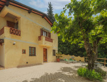 3 -sobna kuća 80 m2 na 2 etaže. Rustikalno i udobno uređena: dnevni boravak/blagovaona s otvorenim kaminom, stolom za blagovanje i TV-om sa sat. prijemnikom. Izlaz na terasu. Kuhinjska niša (pećnica, perilica za suđe, 4 plamena za kuhanje, toster, zamrzivač, el. aparat za kavu). Tuš/bidet/WC. Grijanje na plin. Gornji kat: 1 soba s 1 franc. krevetom (180 cm). Izlaz na balkon. 1 soba s 2 kreveta. Izlaz na balkon. Balkon terasa (natkrita). Garnitura za sjedenje, vrtni roštilj, ležaljke (4), ostava. Lijep pogled na planine i šumu. Na raspolaganju: perilica za rublje, glačalo, visoka dječja stolica, dječji krevetić do 2 godine, sušilo za kosu. Internet (wireless LAN [WLAN], besplatan). Parking (ograđen, 2 automobila) uz kuću. 1 kućni ljubimac / pas dozvoljen.- postrojenja