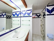 "Aldea del Mar", 3 -sobni apartman 60 m2 na 2. katu. Rustikalno i udobno uređen: dnevni boravak/blagovaona 25 m2 s stolom za blagovanje, TV-om, radiom, klima uređajem i grijanjem na topli zrak. Izlaz na lođu. 1 soba 15 m2 s 1 bračnim krevetom (180 cm, dužina 190 cm). 1 soba 12 m2 s 2 kreveta (80 cm, dužina 190 cm). Otvorena kuhinja 5 m2 (4 ploče za kuhanje, mikrovalna pećnica) s bojlerom (80 litara). Tuš/WC. Balkon 8 m2. Garnitura za sjedenje. Na raspolaganju: perilica za rublje, glačalo. Internet (wireless LAN [WLAN], besplatan). Dodatna informacija: prikladno za obitelji. TV samo ES, FR. AT-441634-A- postrojenja