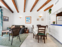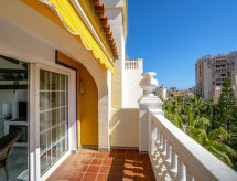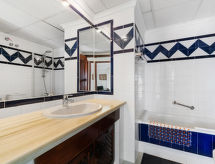 "Aldea del Mar", 3 -sobni apartman 60 m2 na 3. katu. Svrsishodno i komforno uređen: dnevni boravak/blagovaona s digitalnim TV, plosnatim TV ekranom, klima uređajem i grijanjem na topli zrak. Izlaz na balkon. 1 soba s 1 bračnim krevetom (180 cm, dužina 200 cm), klima uređajem i grijanjem na topli zrak. 1 soba s 2 kreveta (80 cm, dužina 190 cm), klima uređajem i grijanjem na topli zrak. Otvorena kuhinja (pećnica, 4 staklokeramičke ploče za kuhanje, toster, mikrovalna pećnica, zamrzivač, el. aparat za kavu). Kada/WC. El. grijanje. Mala terasa. Pogled na mjesto i na grad. Na raspolaganju: perilica za rublje, glačalo, sušilo za kosu. Internet (wireless LAN [WLAN], besplatan). Dodatna informacija: kuća za nepušače. Najviše 1 mali kućni ljubimac / pas dozvoljen. VT-464805-A- postrojenja