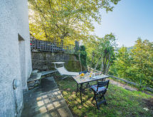 2 -sobna kuća u nizu 60 m2 na 3 etaže. Objekt pogodan za 2 odraslih. Svrsishodno i rustikalno uređena: otvorena kuhinja (pećnica, 4 plamena za kuhanje, toster, kuhalo za vodu, el. aparat za kavu) s otvorenim kaminom, stolom za blagovanje i plosnatim TV ekranom. Donji kat: (strme stepenice), - 200 cm, bez prozora s tušem/bidetom/WC-om i bojlerom. Izlaz na mjesto za sjedenje u vrtu. Gornji kat: (strme stepenice) 1 bračna soba. Bez grijanja. Drveni pod. Garnitura za sjedenje, vrtni roštilj (prijenosni), ležaljke (2). Pogled u daljini na planine. Na raspolaganju: perilica za rublje, glačalo, sušilo za kosu. Internet (wireless LAN [WLAN], besplatan). Dodatna informacija: apartman prema dvorištu. Kuća za nepušače. 1 kućni ljubimac / pas dozvoljen.- postrojenja