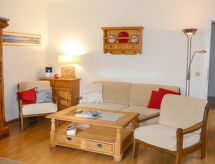 "Higgins", 3 -sobni apartman 75 m2 na 4. katu. Svijetlo, udobno uređen: predsoblje. Dnevni boravak/blagovaona s TV-om sa sat. prijemnikom i DVD-om. Izlaz na lođu. 1 bračna soba s kosim stropom. 1 soba s kosim stropom s 1 krevetom. Kuhinja (4 ploče za kuhanje, perilica za suđe, toster, kuhalo za vodu, mikrovalna pećnica). Kada, odv. WC. Balkon. Balkonski namještaj. Lijep pogled na planine. Na raspolaganju: Internet (wireless LAN [WLAN], besplatan). Dodatna informacija: apartman za nepušače. Protupožarni alarm. 50402-000686-2020- postrojenja