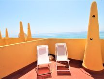 "Alkabir playa", 4 -sobna kuća u nizu 85 m2 na 4 etaže. Objekt pogodan za 6. Svrsishodno i komforno uređena: dnevni boravak/blagovaona 19 m2 s digitalnim TV i klima uređajem. Izlaz na terasu. Otvorena kuhinja (perilica za suđe, 3 staklokeramičke ploče za kuhanje, mikrovalna pećnica, zamrzivač, el. aparat za kavu). Klima uređaj. Gornji kat: 1 soba 7 m2 s 2 kreveta (90 cm, dužina 190 cm). 1 soba 7 m2 s 2 kreveta (80 cm, dužina 190 cm), ventilatorom. Kada/WC. 2. Gornji kat: 1 soba 8 m2 s 1 franc. krevetom (140 cm, dužina 200 cm), klima uređajem. Kada/WC. Izlaz na terasu. Velika terasa 20 m2. Garnitura za sjedenje. Pogled u daljini na more i krajolik. Na raspolaganju: perilica za rublje, sušilica, glačalo. Internet (wireless LAN [WLAN], besplatan). VT-490929-A- postrojenja