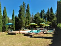 Lucignano 7 km od mjesta San Gimignano: Rustikalan Agroturizam na vinogradarskom imanju "Casa alle Vacche", okružen drvećem, poljima i vinogradima. 3 kuće u residenceu. 6 apartmana u residenceu. 7 km od centra mjesta San Gimignano, 7 km od centra mjesta Certaldo, 48 km od centra mjesta Siena, izolirano, povišeno mjesto, 70 km od mora, u zelenom. Za zajedničko korištenje: parcela 32 ha - bilje i drveće, prirodni vrt, livada, bazen ograđen (14 x 6 m, sezonska dostupnost: 01.May. - 15.Oct.). Tuš/WC uz bazen, vanjski tuš, terasa, vrtna garnitura za sjedenje, roštilj. Bazen održava vlasnik/vrtlar. U kući: recepcija, restoran, prostorija za druženje s TV, perilica za rublje (za zajedničko korištenje). 700 m dugački prilaz autom (bijela cesta). Parking na parceli. Trgovina živežnim namirnicama 7 km, supermarket 7 km, restoran 1.2 km, najam bicikli 7 km, autobusna postaja "Certaldo" 7 km, željeznička postaja "Certaldo" 7 km, pješčana plaža "Cecina Mare" 70 km, vanjski bazen 7 km, natkriveni bazen 7 km. U blizini: Volterra 33 km, Firenze 64 km, Pisa 83 km. Dodatna informacija: preporučljiv vlastiti prijevoz. Prikladno za obitelji, oprema za bebe (uklj.). Prodaja domaćih poljoprivrednih proizvoda.Interior