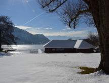 "Appartement Ossiacherseeblick mit Sauna", 3 -sobni apartman 70 m2. Svijetlo, moderno i ukusno uređen: dnevni boravak/blagovaona s 1 kaučem za 2 osobe, stolom za blagovanje, TV-om sa sat. prijemnikom i plosnatim TV ekranom. 1 bračna soba. 1 soba s 2 kreveta. Otvorena kuhinja (pećnica, perilica za suđe, 4 staklokeramičke ploče za kuhanje, toster, kuhalo za vodu, mikrovalna pećnica, zamrzivač, el. aparat za kavu). Kada/WC. Balkon. Balkonski namještaj. Vrlo lijep pogled na jezero i krajolik. Na raspolaganju: sauna, sef, sušilo za kosu. Internet (wireless LAN [WLAN], besplatan). Dodatna informacija: apartman za nepušače. Protupožarni alarm. Rezervira se tipski objekt (kuća, apartman) i moguća su manja odstupanja. Sauna je infracrvena kabina.- postrojenja