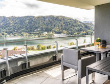 "Gerlitzen", 3 -sobni apartman 80 m2. Svijetlo, moderno i ukusno uređen: dnevni boravak/blagovaona s stolom za blagovanje, TV-om sa sat. prijemnikom i plosnatim TV ekranom. 1 bračna soba. 1 soba s 1 x 2 kreveta na kat, 1 bračnim krevetom. Otvorena kuhinja (pećnica, perilica za suđe, 4 staklokeramičke ploče za kuhanje, toster, kuhalo za vodu, mikrovalna pećnica, zamrzivač, el. aparat za kavu). 2 x tuš/WC. Balkon. Balkonski namještaj. Vrlo lijep pogled na jezero i krajolik. Na raspolaganju: perilica za rublje, sef, sušilo za kosu. Internet (wireless LAN [WLAN], besplatan). Dodatna informacija: apartman za nepušače. Protupožarni alarm. Rezervira se tipski objekt (kuća, apartman) i moguća su manja odstupanja. Sauna je infracrvena kabina.- postrojenja