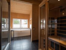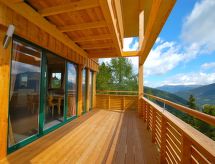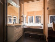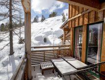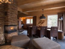 "Chalet Zirbenwald I 11P", 5 -sobni chalet 120 m2. Luksuzno i ukusno uređen: otvoreni dnevni boravak/blagovaona s kutom za blagovanje, TV-om sa sat. prijemnikom i plosnatim TV ekranom. Otvorena kuhinja (pećnica, perilica za suđe, 4 staklokeramičke ploče za kuhanje, mikrovalna pećnica, zamrzivač, el. aparat za kavu). 2 x tuš/WC. Gornji kat: 2 bračne sobe. 1 bračna soba s 1 krevetom. 1 soba s 2 x 2 kreveta na kat. Kada/tuš/WC, hidromasažnom kadom, Sauna. Balkon terasa. Pogled na planine i krajolik. Na raspolaganju: Internet (wireless LAN [WLAN], besplatan). Parking (2 automobila) uz kuću. Dodatna informacija: apartman za nepušače. Protupožarni alarm. Rezervira se tipski objekt (kuća, apartman) i moguća su manja odstupanja. Sauna je infracrvena sauna.- postrojenja