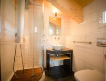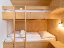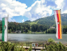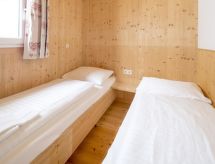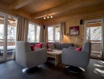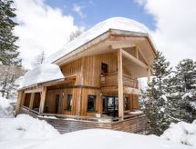 "Chalet Zirbenwald 8P", 5 -sobni chalet 100 m2. Prostrano, luksuzno i s puno drva uređen: otvoreni dnevni boravak/blagovaona s kutom za blagovanje, TV-om sa sat. prijemnikom i plosnatim TV ekranom. Otvorena kuhinja (pećnica, perilica za suđe, 4 staklokeramičke ploče za kuhanje, mikrovalna pećnica, el. aparat za kavu). Tuš/WC, Sauna. Gornji kat: 2 bračne sobe. 2 sobe, svaka soba s 1 x 2 kreveta na kat. Tuš/WC. Balkon ili terasa. Balkonski namještaj. Lijep pogled na krajolik i mjesto. Na raspolaganju: Internet (wireless LAN [WLAN], besplatan). Parking uz kuću. Dodatna informacija: apartman za nepušače. Protupožarni alarm. Rezervira se tipski objekt (kuća, apartman) i moguća su manja odstupanja.- postrojenja