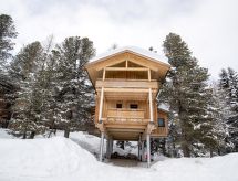 "Chalet Zirbenwald III/14P/5SZ", 6 -sobni chalet 130 m2. Prostrano, luksuzno i s puno drva uređen: 2 bračne sobe, svaka soba s tušem/WC-om. 2 dječje sobe, svaka soba s 2 x 2 kreveta na kat. Donji kat: 1 bračna soba. Gornji kat: veliki dnevni boravak s kutom za blagovanje i TV-om sa sat. prijemnikom (plosnatim TV ekranom), peći na plin. Otvorena kuhinja (pećnica, perilica za suđe, 4 staklokeramičke ploče za kuhanje, zamrzivač, el. aparat za kavu). Tuš/WC, hidromasažnom kadom, Sauna. Balkon ili terasa. Balkonski namještaj. Lijep pogled na planine i krajolik. Na raspolaganju: Internet (wireless LAN [WLAN], besplatan). Parking (2 automobila) uz kuću. Dodatna informacija: apartman za nepušače. Protupožarni alarm. Rezervira se tipski objekt (kuća, apartman) i moguća su manja odstupanja.- postrojenja