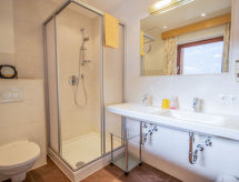 5 -sobni apartman 117 m2 na 1. katu. Prostrano, ukusno uređen: 1 bračna soba s kabelskom TV (plosnatim TV ekranom). 3 sobe, svaka soba s 1 krevetom, 1 bračnim krevetom i kabelskom TV (plosnatim TV ekranom). Dnevni boravak/blagovaona s stolom za blagovanje i TV-om sa sat. prijemnikom (plosnatim TV ekranom). Otvorena kuhinja (pećnica, perilica za suđe, 4 staklokeramičke ploče za kuhanje, mikrovalna pećnica, el. aparat za kavu). 3 x tuš/WC, odv. WC, duplim umivaonikom. Komforno uređeno u ladanjskom stilu. 2 balkona. Prekrasan panoramski pogled na planine i dolinu. Na raspolaganju: telefon, sef, sušilo za kosu. Internet (wireless LAN [WLAN], besplatan). Parking (3 automobila). Dodatna informacija: apartman za nepušače. Protupožarni alarm. U slučaju boravka manjeg broja gostiju od maksimalnog kapaciteta objekta, neće biti na raspolaganju sve smještajne jedinice.- postrojenja