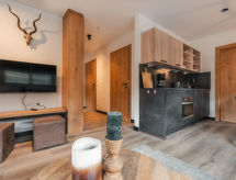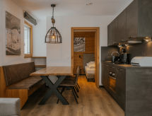 Gargellen: Moderni stambeni objekt "Alpin Resort Montafon", 1'500 m n.m.. 3 kuće u turističkom naselju. 60 apartmana u residenceu. U četvrti Vergalen 1 km od centra mjesta Gargellen, sunčano mjesto na padini, 10 m od skijališta. U kući: recepcija, bar, bistro, spremište za skije, centralno grijanje. Zimi molimo ponijeti lance za snijeg. Parking uz kuću. Supermarket 1 km, restoran 1 km. Skijaške žičare 1 km, najam skijaške opreme 1 km, škola skijanja 1 km. Poznata skijališta u blizini: Gargellen, Silvretta Montafon, Brandnertal. Dodatna informacija: U slučaju povoljnih snježnih uvjeta pristup do kuće na skijama. Slika je samo jedan primjer.Interior