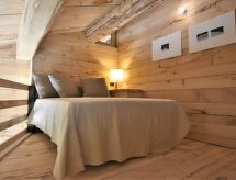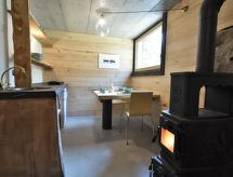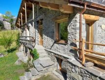 "Alpine Suite", 2 -sobni Loft 40 m2 na 3 etaže, u povišenom prizemlju. Djelomično spušten strop, potpuno renoviran godine 2022, stilski i s puno drva uređen: otvorena dnevno-spavaća soba s kliznim vratima, panoramskim prozorom s 1 bračnim krevetom. Izlaz u vrt, na terasu. Donji kat: otvorena kuhinja (2 ploče za kuhanje) s stolom za blagovanje i peći na drva. Tuš/bidet/WC. Grijanje. Gornji kat: otvorena galerija s 1 franc. krevetom (140 cm). Garnitura za sjedenje. Vrlo lijep panoramski pogled na planine, dolinu i Cascate dell'Acquafraggia. Na raspolaganju: sušilo za kosu, drvo (uz doplatu). Dodatna informacija: apartman za nepušače. Najviše 1 kućni ljubimac / pas dozvoljen. Vlastiti ulaz.- postrojenja