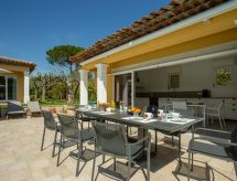 Lijepa vila "Alwena". Izvan mjesta, 5 km od centra mjesta Grimaud, u jednoj četvrti za stanovanje, 800 m od mora, 1.2 km od plaže. Za samostalno korištenje: njegovani vrt 2'000 m2 (ograđen) travnjak, bazen (12 x 6 m, 100- 200 cm dubok, sezonska dostupnost: 01.Apr. - 01.Oct.) s alarmnim uređajem. Kućica uz bazen s hladnjakom i štednjakom, boćalište. Trgovina 4 km, trgovina živežnim namirnicama 300 m, supermarket 4 km, restoran 800 m, pješčana plaža "Les Prairies de la mer" 1.2 km. Sportska lučica 3 km, golf teren (18 rupa) 4 km, škola jedrenja 5 km, tenis 4 km, biciklistička staza 800 m. U blizini: Saint Tropez 11 km, Sainte Maxime 11 km, Plages de Pampelonne 17 km, Cannes 85 km, Nice 110 km, Monaco 130 km. Poznata jezera u blizini: Le Lac de Sainte Croix 98 km. Pješačke staze: Le Massif de l'Esterel 50 km. Ključeve ćete preuzeti u turističkoj agenciji Interhome u mjestu Gassin, 4 km.Interior