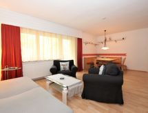 2 -sobni apartman 62 m2 na 1. katu, prema zapadu. Ukusno i udobno uređen: predsoblje. Velika dnevno-spavaća soba s 1 kaučem za 2 osobe, kutom za blagovanje i kabelskom TV (plosnatim TV ekranom), muzičkom linijom. Izlaz na balkon. 1 soba s 2 kreveta. Kuhinja (pećnica, 4 staklokeramičke ploče za kuhanje). Kada/WC. Balkon. Na raspolaganju: telefon. Dodatna informacija: apartman za nepušače. Najviše 1 kućni ljubimac / pas dozvoljen. Protupožarni alarm.- postrojenja