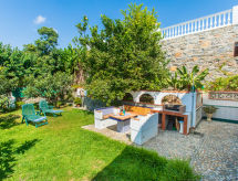 "Amanecer (AMU 103)", 4 -sobna kuća 95 m2. Rustikalno uređena: dnevni boravak/blagovaona s otvorenim kaminom, stolom za blagovanje i TV-om sa sat. prijemnikom. Izlaz na terasu. 1 soba s 1 franc. krevetom (135 cm). 2 sobe, svaka soba s 2 kreveta (90 cm, dužina 200 cm). Mala kuhinja (mini pećnica, pećnica, 4 plamena za kuhanje, toster, kuhalo za vodu, zamrzivač, el. aparat za kavu) s kutom za blagovanje. Sjedeća kada/WC. Velika terasa (djelomično natkrita). Garnitura za sjedenje, vrtni roštilj, ležaljke (8). Na raspolaganju: perilica za rublje, dječji krevetić. Internet (wireless LAN [WLAN], besplatan). Najviše 1 kućni ljubimac / pas dozvoljen. VFT/GR/03413- Značajke smještaja