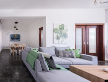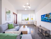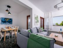 "Sunset View", 4 -sobni apartman 136 m2 na 1. katu. Prostrano i svijetlo, vrlo komforno i ukusno uređen: veliki dnevni boravak/blagovaona s stolom za blagovanje i TV-om sa sat. prijemnikom (plosnatim TV ekranom), klima uređajem. 1 bračna soba s 2 kreveta i klima uređajem. 1 bračna soba s 1 bračnim krevetom i klima uređajem. 1 bračna soba s 1 bračnim krevetom i TV-om sa sat. prijemnikom (plosnatim TV ekranom), klima uređajem. Izlaz na balkon. Velika kuhinja (pećnica, 4 staklokeramičke ploče za kuhanje, toster, kuhalo za vodu, mikrovalna pećnica, el. aparat za kavu). Kada/bidet/WC. Drveni pod. Balkonski namještaj, lođa. Vrlo lijep pogled na more. Na raspolaganju: perilica za rublje, glačalo, sušilo za kosu. Internet (wireless LAN [WLAN], besplatan). Dodatna informacija: protupožarni alarm, vatrogasni aparat. 1039E60000355701- postrojenja