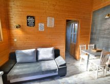 "Amelia", 2 -sobni bungalov 22 m2. Jednostavno i udobno uređen: dnevno-spavaća soba s 1 kaučem za 1 osobu i TV-om sa sat. prijemnikom. Izlaz na terasu. 1 soba s 1 x 2 kreveta na kat. Kuhinjska niša (2 staklokeramičke ploče za kuhanje, mikrovalna pećnica, gril) s kutom za blagovanje. Tuš/WC. El. grijanje, bojlerom (50 litara). Terasa 12 m2. Garnitura za sjedenje, ležaljke (2). Parking uz kuću.- postrojenja