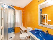 "Ami", 4 -sobna kuća 150 m2, na međukatu. Svrsishodno uređena: dnevni boravak/blagovaona s digitalnim TV i klima uređajem. Izlaz na mjesto za sjedenje u vrtu, na bazen. 1 soba s 1 franc. krevetom (150 cm, dužina 190 cm). 1 soba s 2 kreveta (90 cm, dužina 190 cm) s 1 x 2 kreveta na kat (90 cm, dužina 190 cm). Kuhinja (4 ploče za kuhanje, pećnica, perilica za suđe, toster, kuhalo za vodu, mikrovalna pećnica, zamrzivač, el. aparat za kavu). Tuš/WC. Bez grijanja. Velika terasa. Garnitura za sjedenje, vrtni roštilj, ležaljke. Pogled na bazen i krajolik. Na raspolaganju: perilica za rublje, visoka dječja stolica, dječji krevetić, sušilo za kosu. Internet (wireless LAN [WLAN], besplatan). Dodatna informacija: prikladno za obitelji. TV samo ES. HUTG-046038- postrojenja