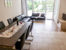 4 -sobni apartman 105 m2 na 2. katu. Renoviran godine 2015, moderno uređen: dnevni boravak/blagovaona s TV-om sa sat. prijemnikom i radiom. Izlaz na balkon, prema jugu. 1 soba s 2 kreveta (90 cm, dužina 190 cm). Izlaz na balkon, prema zapadu. 1 soba s 2 kreveta. Izlaz na balkon, prema jugu. 1 soba s 2 kreveta (90 cm, dužina 190 cm). Otvorena kuhinja (pećnica, perilica za suđe, 4 staklokeramičke ploče za kuhanje, mikrovalna pećnica, el. aparat za kavu, Doze za mašinu za kavu (Nespresso) uz doplatu, set za fondue (sir)) s stolom za blagovanje. Kada/WC, tuš/WC. Podno grijanje. Balkon, prema jugu i prema zapadu. Garnitura za sjedenje. Vrlo lijep pogled na planine. Na raspolaganju: sušilo za kosu. Internet (wireless LAN [WLAN], besplatan). Parking (1 automobil). Dodatna informacija: apartman za nepušače. Najviše 1 kućni ljubimac / pas dozvoljen.- Značajke smještaja