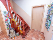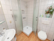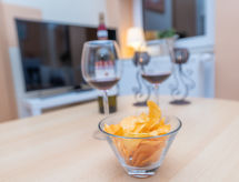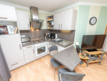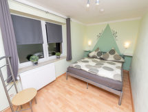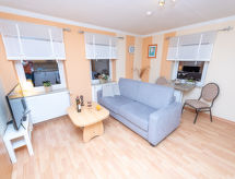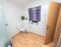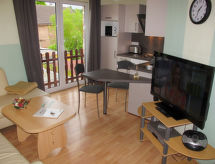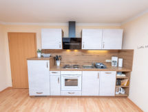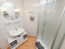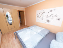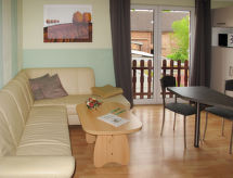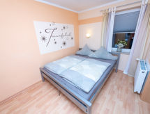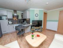 4 -sobni apartman 63 m2, na gornjem katu. Udobno uređen: dnevni boravak/blagovaona s stolom za blagovanje i TV-om sa sat. prijemnikom (plosnatim TV ekranom), muzičkom linijom i DVD-om. Dnevni boravak/blagovaona s stolom za blagovanje, kuhinjskim blokom, TV-om sa sat. prijemnikom, muzičkom linijom i DVD-om. 2 bračne sobe. Kuhinjska niša (4 ploče za kuhanje, pećnica, perilica za suđe, toster, kuhalo za vodu, mikrovalna pećnica, el. aparat za kavu). 2 x tuš/WC. Grijanje na plin. Na raspolaganju: Internet (wireless LAN [WLAN], besplatan). Dodatna informacija: apartman za nepušače. Protupožarni alarm. Zasebne stambene jedinice nisu interno povezane.- postrojenja