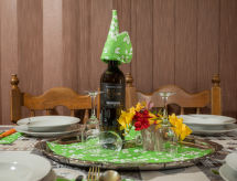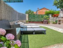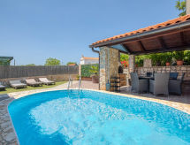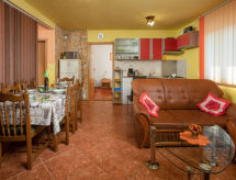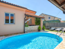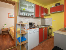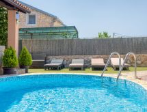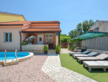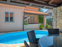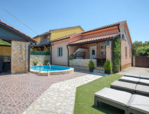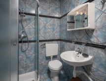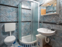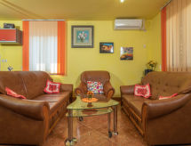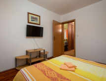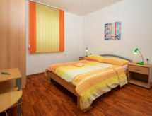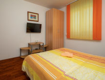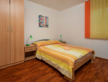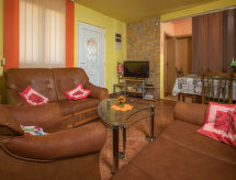 4 -sobna polovica dvojne kuće 76 m2. Dnevni boravak/blagovaona s TV-om sa sat. prijemnikom i klima uređajem. Izlaz na terasu. 3 sobe, svaka soba s 1 franc. krevetom (140 cm, dužina 200 cm). Mala, otvorena kuhinja (4 ploče za kuhanje, pećnica, perilica za suđe, toster, kuhalo za vodu, mikrovalna pećnica, zamrzivač, el. aparat za kavu). 2 x tuš/WC. Terasa (natkrita). Garnitura za sjedenje, ležaljke (4). Na raspolaganju: sef, glačalo, mrežice protiv komaraca, dječji krevetić. Internet (wireless LAN [WLAN], besplatan). Dodatna informacija: kuća za nepušače. Najviše 3 kućna ljubimca / psa dozvoljena. Vlastiti ulaz.- postrojenja