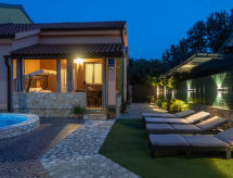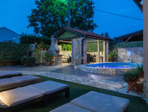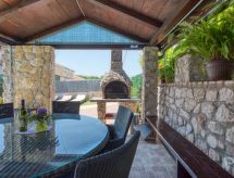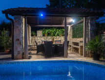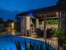 Dvojna kuća "Ana (MLK135)". U zaseoku Županje 12 km od centra mjesta Malinska, 3 km od centra mjesta Šilo, 13 km od centra mjesta Vrbnik, 3 km od mora, 3 km od plaže. Za samostalno korištenje: parcela 250 m2 (ograđena), bazen (5 x 3 m, 120 cm dubok, sezonska dostupnost: 15.Mar. - 15.Nov.). Vanjski tuš, terasa, vrtna garnitura za sjedenje, roštilj. Bazen održava vlasnik/vrtlar. U kući: pristup internetu, perilica za rublje. Parking (za 3 automobila) uz kuću. Trgovina 1.4 km, pješčana plaža 4 km šljunčana plaža 3 km. Dodatna informacija: zračna luka 16 km od kuće.Interior