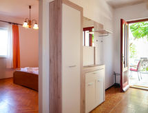 4 -sobna kuća 95 m2. 2 sobe, svaka soba s 1 bračnim krevetom (2 x 80 cm, dužina 200 cm). 1 soba s 1 bračnim krevetom (2 x 90 cm, dužina 200 cm). Kuhinja/dn. boravak (4 ploče za kuhanje, pećnica, toster, kuhalo za vodu, zamrzivač, el. aparat za kavu) s TV-om sa sat. prijemnikom. Izlaz na terasu. 2 x tuš/WC. Terasa 40 m2. Garnitura za sjedenje, vrtni roštilj (prijenosni), ležaljke. Na raspolaganju: Internet (wireless LAN [WLAN], besplatan). Najviše 1 kućni ljubimac / pas dozvoljen.- postrojenja