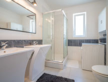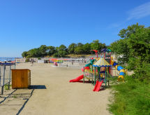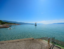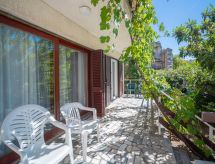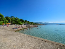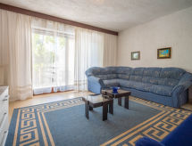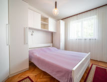 4 -sobna polovica dvojne kuće 120 m2 na 2 etaže, prema jugu. Dnevni boravak s 1 kaučem za 1 osobu i TV-om sa sat. prijemnikom (plosnatim TV ekranom), klima uređajem. Izlaz na terasu. Blagovaona. Izlaz na terasu. 1 soba s 1 franc. krevetom (160 cm, dužina 200 cm). Otvorena kuhinja (4 ploče za kuhanje, pećnica). Tuš/WC, duplim umivaonikom. Gornji kat: 1 soba s 1 franc. krevetom (160 cm, dužina 200 cm), klima uređajem. Izlaz na balkon. 1 soba s 1 krevetom (90 cm, dužina 190 cm), 1 bračnim krevetom (2 x 90 cm, dužina 190 cm), TV-om sa sat. prijemnikom (plosnatim TV ekranom), klima uređajem. Izlaz na balkon. Blagovaona. Otvorena kuhinja (4 ploče za kuhanje, pećnica). Kada/WC. Balkon 10 m2, terasa 25 m2 (djelomično natkrita). Garnitura za sjedenje, balkonski namještaj. Na raspolaganju: perilica za rublje, dječji krevetić. Internet (wireless LAN [WLAN], besplatan). 1 kućni ljubimac / pas dozvoljen. Internet wireless dostupan samo u periodu 01.06.-30.09.- Značajke smještaja