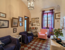 Lijepa, povijesna kuća "Angela", na 3 kata, renovirana. U centru mjesta Dolcedo, 7 km od centra mjesta Imperia Porto Maurizio, 34 km od centra mjesta San Remo, odlična pozicija: u samom centru, a ipak mirno, 7 km od mora, 10 m od potoka, u pješačkoj zoni. 20 m pješačka staza do kuće. Javni parking 200 m. Trgovina 50 m, supermarket 7 km, restoran 50 m, bar 20 m, cafe 50 m, najam bicikli 7 km, autobusna postaja 50 m, željeznička postaja "Imperia Porto Maurizio" 8 km, pješčana plaža "Imperia Borgo Marina" 8 km šljunčana plaža "Impertia Porto Maurizio" 7 km, jezero za kupanje "Laghetti di Lecchiore" 5 km. Jahanje konja 3 km. Prodaja domaćih poljoprivrednih proizvoda. Apartman se nalazi u zoni s ograničenim prometnim prilazom.Interior