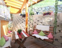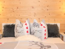 4 -sobni apartman 100 m2 na 2 etaže, u prizemlju. Prostrano, renoviran godine 2021, komforno i udobno uređen: 1 soba s 1 krevetom, 1 kaučem za 1 osobu i 1 bračnim krevetom. Velika kuhinja/dn. boravak (4 ploče za kuhanje, pećnica, perilica za suđe) s stolom za blagovanje i TV-om sa sat. prijemnikom (plosnatim TV ekranom). Tuš/WC. Gornji kat: veliko predsoblje. Izlaz na terasu. 1 bračna soba s TV-om sa sat. prijemnikom (plosnatim TV ekranom). 1 velika bračna soba s TV-om sa sat. prijemnikom (plosnatim TV ekranom). Izlaz na balkon. Tuš/WC. Garnitura za sjedenje, zimski vrt. Vrlo lijep pogled na planine. Na raspolaganju: sušilo za kosu. Internet (wireless LAN [WLAN]). Parking (2 automobila). Dodatna informacija: apartman za nepušače. Vlastiti ulaz.- postrojenja