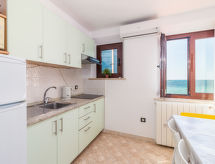 "UMA102", 1 -sobni apartman 33 m2 na 2. katu. 1 soba s 1 krevetom, 1 bračnim krevetom i TV-om sa sat. prijemnikom (plosnatim TV ekranom), klima uređajem. Otvorena kuhinja (4 ploče za kuhanje, mikrovalna pećnica, zamrzivač, el. aparat za kavu) s stolom za blagovanje. Tuš/WC. Pogled na more. Na raspolaganju: Internet (wireless LAN [WLAN], besplatan). Dodatna informacija: apartman za nepušače. Najviše 1 kućni ljubimac / pas dozvoljen.- postrojenja