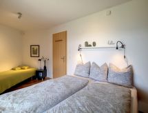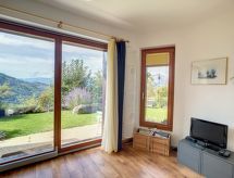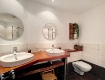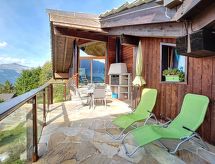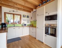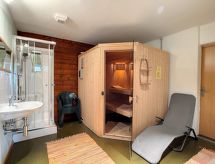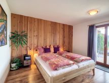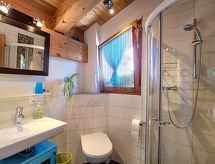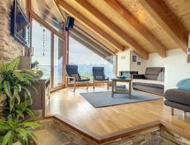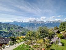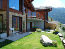 "Aosta", 4 -sobna polovica dvojne kuće 150 m2 na 2 etaže. Komforno i udobno uređena: predsoblje. Blagovaona. Dnevni boravak s otvorenim kaminom, švedskom peći, kabelskom TV i međunarodnim TV kanalima. Izlaz na balkon. Velika, otvorena kuhinja (pećnica, perilica za suđe, 4 staklokeramičke ploče za kuhanje, toster, mikrovalna pećnica, zamrzivač, el. aparat za kavu, Doze za mašinu za kavu (nespresso) uz doplatu, kuhalo za vodu, raclette roštilj, set za fondue (sir)). Tuš/WC. Donji kat: 1 soba s 1 krevetom na izvlačenje (1 osobe 2 x 90 cm, dužina 200 cm), kabelskom TV. Izlaz u vrt. 1 soba s 1 krevetom (90 cm, dužina 200 cm), 1 bračnim krevetom (2 x 80 cm, dužina 200 cm). Izlaz na terasu. 1 soba s 1 bračnim krevetom (2 x 90 cm, dužina 200 cm). Izlaz na terasu. Tuš, kada/tuš/WC, duplim umivaonikom. Balkon 15 m2, prema jugu i prema zapadu, terasa 21 m2, prema jugu i prema zapadu, vrt 70 m2, prema jugu i prema zapadu. Garnitura za sjedenje, vrtni roštilj. Vrlo lijep panoramski pogled na planine i dolinu. Na raspolaganju: perilica za rublje, sušilica, sauna, visoka dječja stolica, dječji krevetić, sušilo za kosu. Internet (wireless LAN [WLAN], besplatan). Parking (2 automobila). Dodatna informacija: apartman za nepušače.- postrojenja