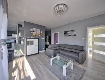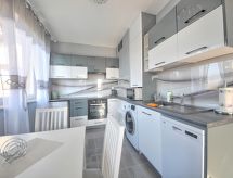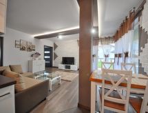 3 -sobni apartman 65 do 70 m2. Komforno i moderno uređen: dnevno-spavaća soba s 1 kaučem za 1 osobu i TV-om. 1 soba s 2 kreveta. 1 soba s 1 bračnim krevetom. Velika, otvorena kuhinja (pećnica, perilica za suđe, 1 Indukcione ploče, mikrovalna pećnica, el. aparat za kavu). Kada/tuš/WC. Grijanje na plin. Lijep pogled na krajolik. Na raspolaganju: perilica za rublje, glačalo, sušilo za kosu. Internet (wireless LAN [WLAN]). 1 kućni ljubimac / pas dozvoljen.- Značajke smještaja