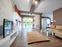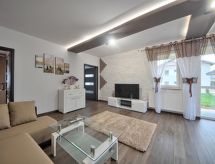 Moderni, ugodni, komforni stambeni objekt "Apartamenty u Kraka", na 2 kata, godina izgradnje 2018. Mirno, sunčano mjesto na padini. Za zajedničko korištenje: parcela 1'000 m2, park, veliki, njegovani vrt. Terasa, vrtna garnitura za sjedenje, roštilj, dječje igralište. Parking uz kuću. Trgovina 1.2 km, trgovina živežnim namirnicama 1.2 km, supermarket 1.7 km, restoran 800 m, autobusna postaja 900 m, natkriveni bazen 1 km. Golf teren 2 km. Dodatna informacija: Fotografija prikazuje samo tipičan primjer kuće. U istoj kući iznajmljuju se dodatni apartmani.Interior