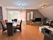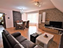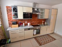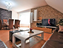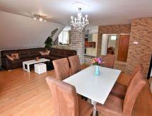 Komforna kuća "Apartments V+K", zasebna. 4 apartmana u kući. Izvan mjesta, mirno, povišeno mjesto, u slijepoj ulici, u zelenom. Za zajedničko korištenje: parcela, park. Dječje igralište. U kompleksu: stolni nogomet, centralno grijanje, alarmni sustav. Na raspolaganju spremište. Parking uz kuću. Trgovina 500 m, trgovina živežnim namirnicama 200 m, supermarket 6 km, restoran 500 m, autobusna postaja 800 m, željeznička postaja 1.5 km, vanjski bazen 18 km. Uspinjača 500 m, skilift 10 km. U blizini: Važecká jaskyňa 9 km, Aqua City Poprad 19 km, Gerlach 25 km. Poznata skijališta u blizini: Štrbské pleso 9 km. Poznata jezera u blizini: Štrbské pleso 9.5 km. Pješačke staze: Tatranský národní park (TANAP).Interior