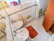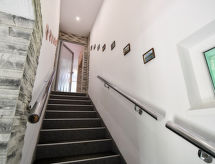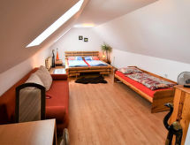 4 -sobni apartman 70 m2, u potkrovlju. Moderno i rustikalno uređen: dnevni boravak s TV-om sa sat. prijemnikom. 2 sobe s kosim stropom, svaka soba s 1 bračnim krevetom. 1 soba s kosim stropom s 1 krevetom i 1 bračnim krevetom. Kuhinjska niša (4 ploče za kuhanje, pećnica, perilica za suđe, mikrovalna pećnica, el. aparat za kavu) s stolom za blagovanje, barom. 2 x tuš/WC, duplim umivaonikom. Lijep pogled na planine. Na raspolaganju: Internet (wireless LAN [WLAN], besplatan). Dodatna informacija: vlastiti ulaz.- postrojenja