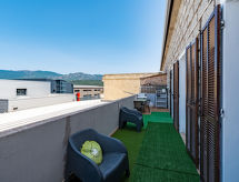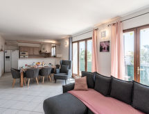 Kuća s više apartmana na 2 kata. U četvrti La Poretta, u samom mjestu 1 km od centra mjesta Porto-Vecchio, 2 km od mora, na glavnoj cesti. U kući: wireless LAN [WLAN], klimatizacija. Javni parking na ulici. Trgovina 100 m, supermarket, trgovački centar 200 m, restoran 300 m, pješice 20 minuta do centra. Marina 2 km. U blizini: Centre ville Porto-Vecchio 1 km, Plage de Santa Giulia 10 km, Plage de Palombaggia 13 km, Bonifacio 29 km. Poznata jezera u blizini: Lac de l'Ospédale 19 km. Pješačke staze: Aiguilles de Bavella 45 km. Dodatna informacija: preporučljiv vlastiti prijevoz.Interior