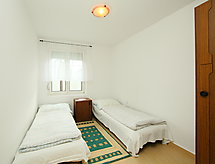 3 -sobna kuća 45 m2. Komforno i lijepo uređena: dnevni boravak s TV-om sa sat. prijemnikom. Izlaz na terasu. 1 soba s 1 bračnim krevetom (200 cm, dužina 200 cm). 1 soba s 2 kreveta. Otvorena kuhinja (2 ploče za kuhanje, mikrovalna pećnica). Tuš/WC. Terasa. Garnitura za sjedenje. Parking (ograđen).- postrojenja