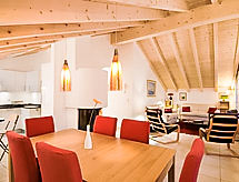 4 -sobni apartman u potkrovlju 119 m2, u potkrovlju, prema jugu. Moderno i ukusno uređen: veliki dnevni boravak/blagovaona s švedskom peći, stolom za blagovanje, kabelskom TV, plosnatim TV ekranom, radiom, CD-om i DVD-om. Izlaz na balkon. 1 bračna soba s 1 bračnim krevetom (1 x 160 cm, dužina 200 cm). 2 sobe, svaka soba s 2 kreveta (90 cm, dužina 200 cm). Velika, otvorena kuhinja (pećnica, perilica za suđe, 4 staklokeramičke ploče za kuhanje, toster, kuhalo za vodu, mikrovalna pećnica, zamrzivač, el. aparat za kavu, raclette roštilj, set za fondue (chinoise, sir)). Kada/WC, tuš/WC. Podno grijanje. Balkon 13 m2, prema jugu. Balkonski namještaj. Vrlo lijep panoramski pogled na Matterhorn. Na raspolaganju: sušilo za kosu. Internet (wireless LAN [WLAN], besplatan). Dodatna informacija: apartman za nepušače.- Značajke smještaja