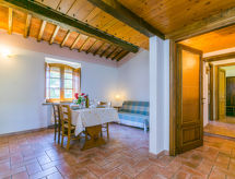 Lijepa ladanjska kuća "Casavecchia", na 2 kata, okružena poljima i vinogradima. 5 apartmana u residenceu. U četvrti Calzalunga 4.5 km od centra mjesta Suvereto, 20 km od mora. Za zajedničko korištenje: parcela - drveće, travnjak za sunčanje, bazen (12 x 6 m, sezonska dostupnost: 21.May. - 24.Sep.). Vanjski tuš, terasa, vrtna garnitura za sjedenje, roštilj, dječje igralište. U kompleksu: recepcija, prostorija za druženje s TV, wireless LAN [WLAN]. Parking na parceli. Trgovina 4.5 km, supermarket 4.5 km, restoran 3 km, pješčana plaža "Parco naturale Rimigliano" 20 km, termalno kupalište "Calidario" 13 km. U blizini: Grosseto 55 km, Siena 90 km, Isola d'Elba 90 km.Interior
